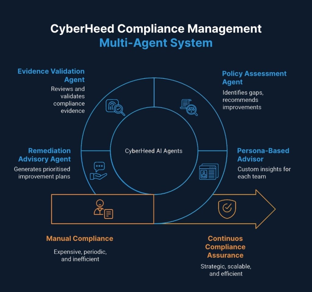 With CyberHeed Compliance Management Multi-Agent AI: