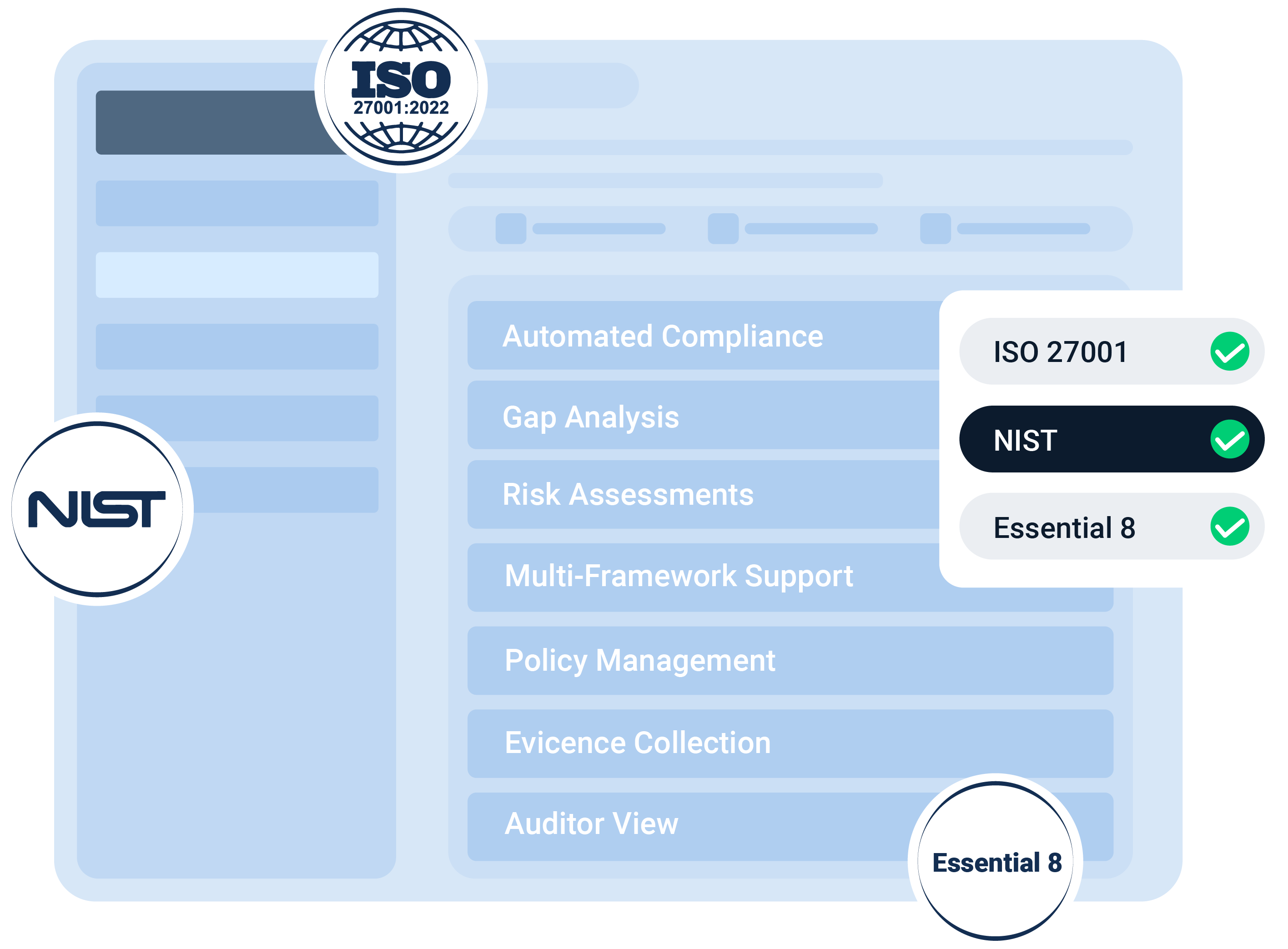 Choose one or more global or local compliance frameworks, such as ISO 27001, NIST, Essential 8, or others. Our platform will benchmark your organisation against the selected standards to identify gaps.